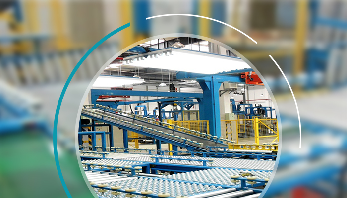 車間工序間通過智能傳輸線配合關節機器人上下料,替代現有人工搬運及上下料的手工方式;在降低企業用工成本的同時,產品的整體良率也得到了提升。